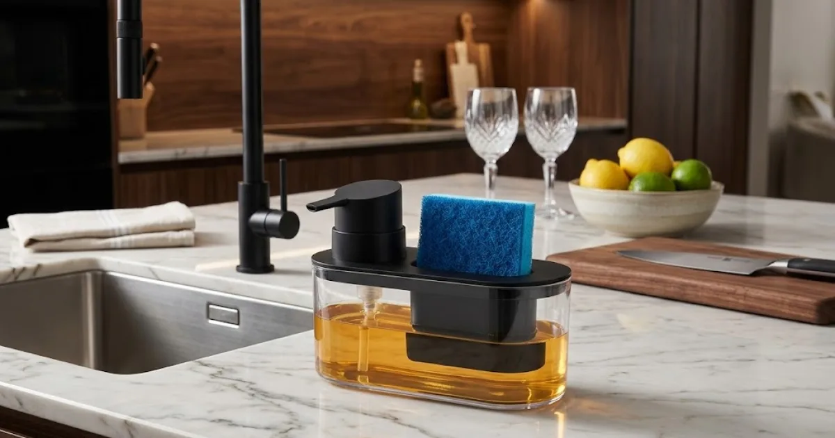 Encontre os melhores dispensers de detergente e esponja para organizar sua pia com praticidade, higiene e um toque moderno de design para sua cozinha.