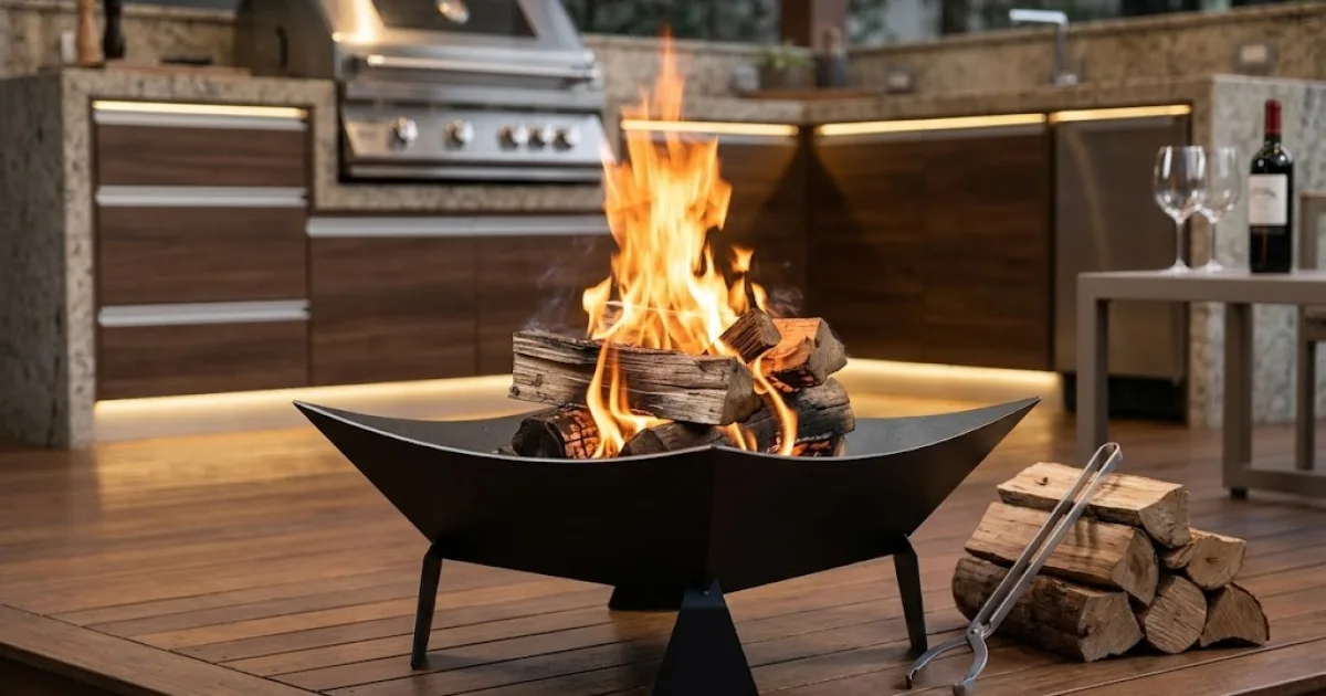 Em áreas externas, a estabilidade é fundamental. Modelos baixos e largos são mais seguros contra tombamento pelo vento ou esbarrões. Nunca use combustíveis impróprios (como gasolina) para acender lareiras; use acendedores específicos ou álcool gel/pastilha para iniciar o fogo com segurança.